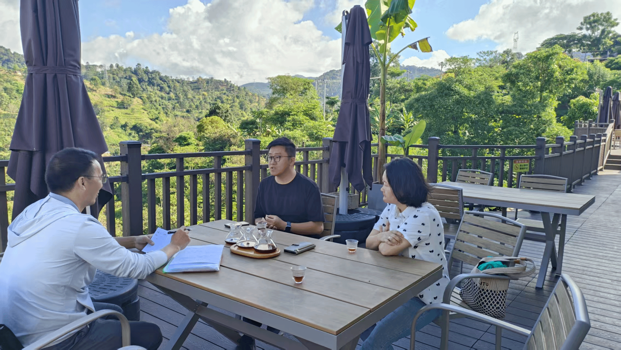 服务团重点围绕咖啡品牌建设、产业人才需求展开精准对接,分别与北归咖啡庄园经理刘先涛、天玉庄咖啡园咖啡师深入探讨。