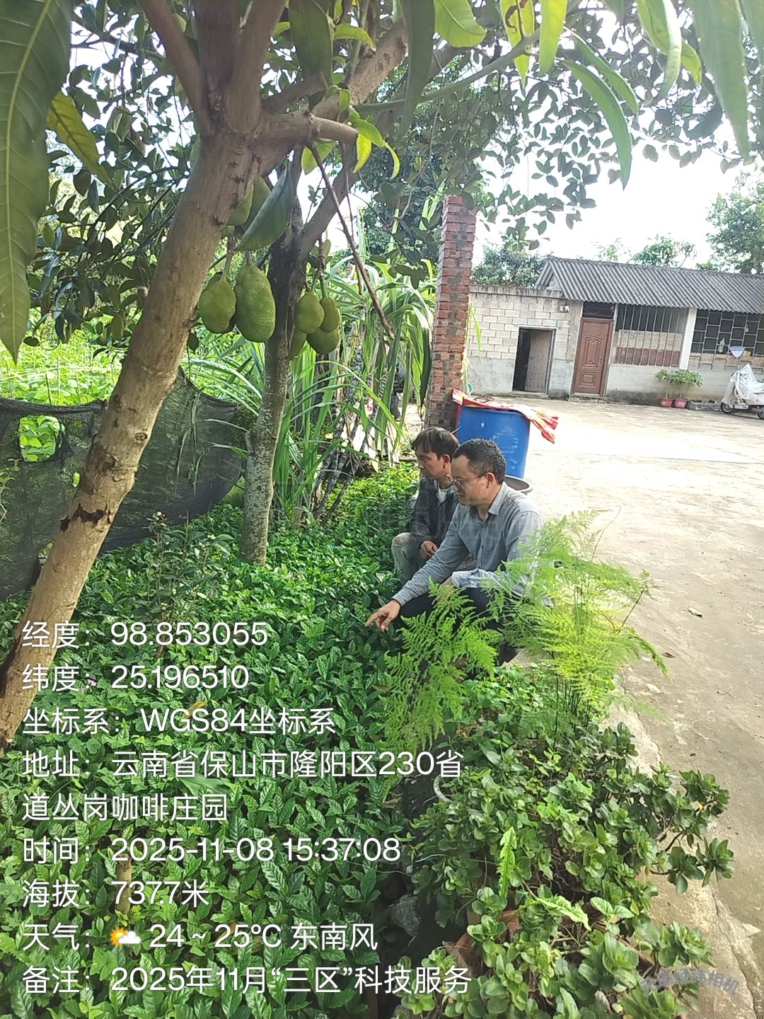 2025年11月6日—9日,施忠海到隆阳区潞江镇赧丛咖啡专业种植合作社开展“三区”科技服务工作。