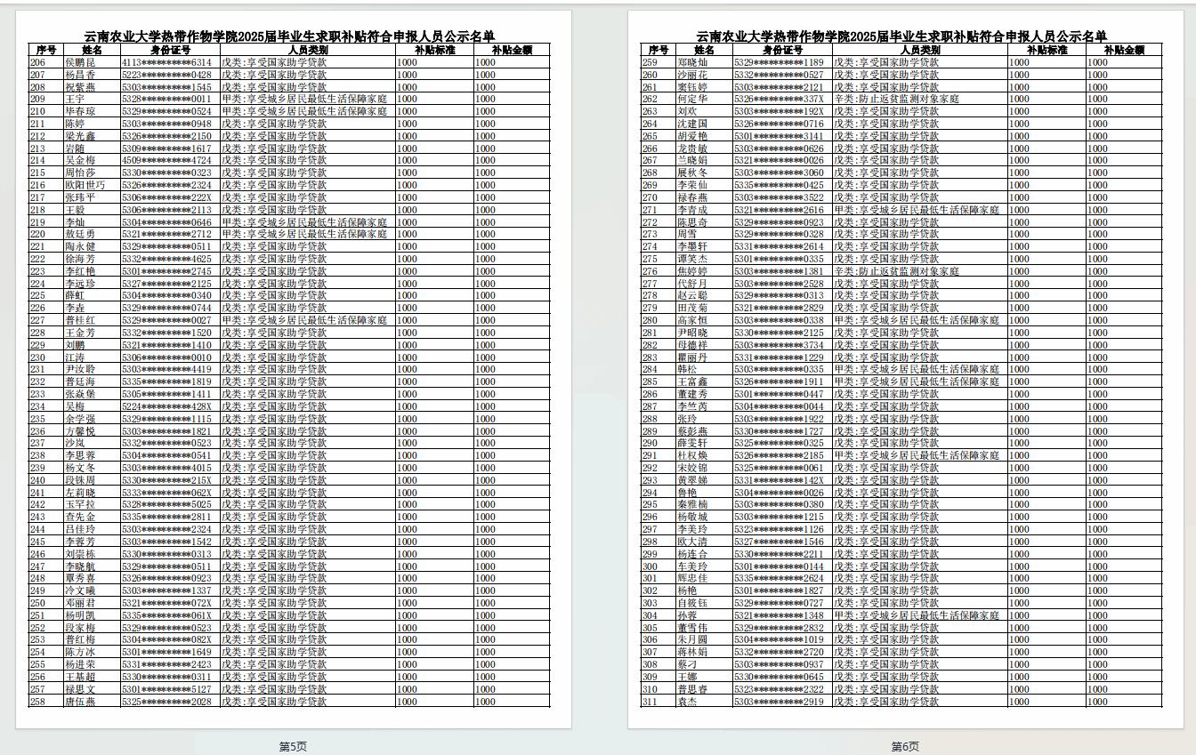 根据财政部人力资源社会保障部关于印 发〈就业补助资金管理办法〉的通知》(财社〔2023〕181 号)、 《云南省人力资源和社会保障厅 云南省教育厅 云南省财政 厅 云南省公安厅 云南省民政厅 云南省农业农村厅 云南 省残疾人联合会关于做好高校毕业生一次性求职补贴发放工作 的通知》(云人社通〔2024〕17号)文件要求,公司认真贯彻落实高校毕业生求职创业补贴申请专项工作,现将2025届毕业生求职补贴符合人员申报公示名单公示如下(见附件),公示期自即日起五个工作日,公式无误后报普洱市公共就业和人才服务中心审核批准。凡对以上结果存在异议,请以实名制书面形式向员工科反应,联系电话0879-3028687。