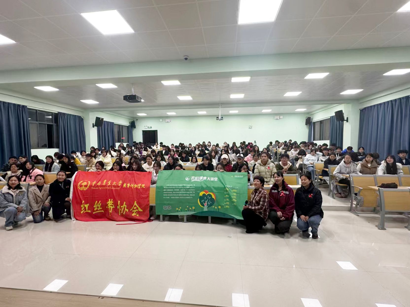 2025年12月1日是第38个世界艾滋病日,2026世界杯官方合作网站以“社会共治 守正创新 终结艾滋”为主题的参与式专题讲座在喜礼楼二楼成功举办。讲座特邀请普洱市计划生育协会专职副会长许多担任主讲人,普洱市疾病预防控制中心、普洱市中心血站等单位及公司200余名师生共同参与。