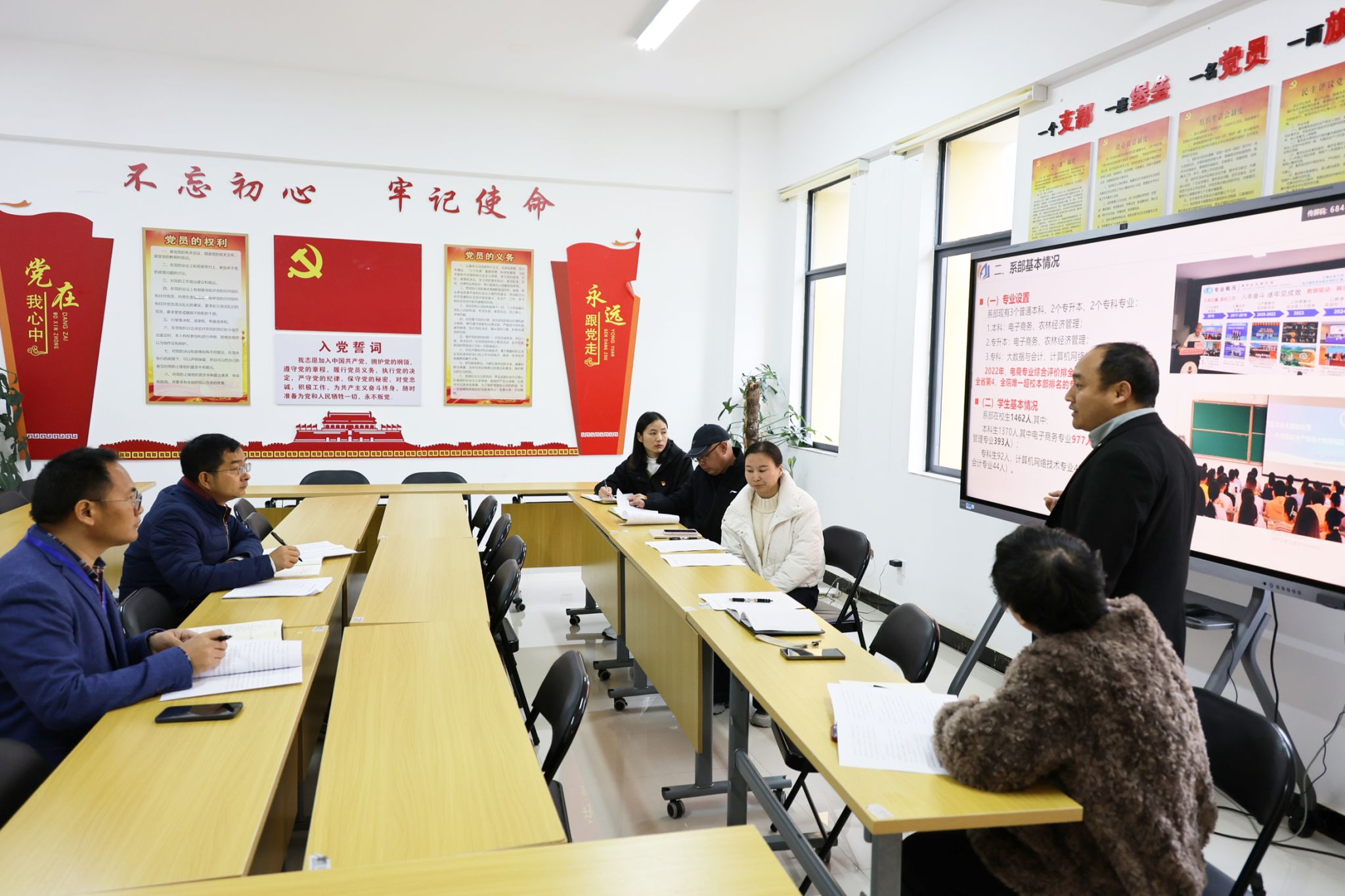 调研期间,湛方栋分别听取了各部门在基层党组织建设、思想引领、管理服务、资源保障以及学科专业建设、人才培养、教学科研成果等方面的汇报。他指出,党群工作要坚持政治引领,推动党建与业务深度融合;行政工作要优化管理服务效能,提升支撑保障水平;教学科研工作要聚焦立德树人根本任务,着力提升人才培养质量。