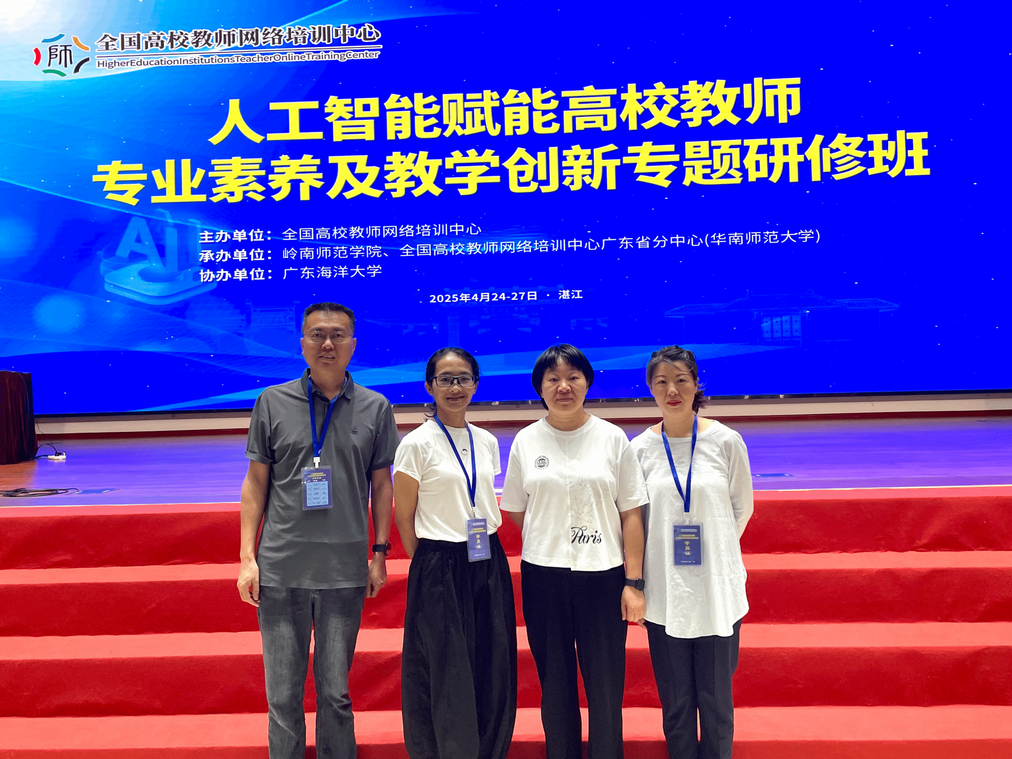 在2025年4月24日至28日期间,热作系积极响应教育发展相关需求,蒋快乐副主任带队,陈云兰、黄艳丽一行3人前往湛江参加人工智能赋能教学创新培训以及看望在当地实习的员工。