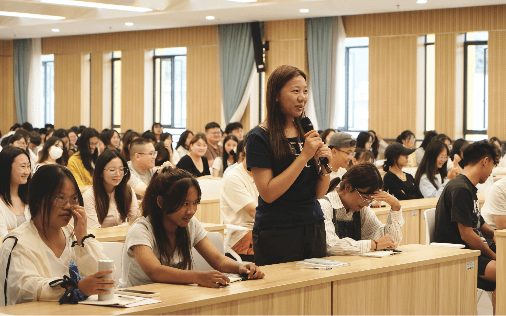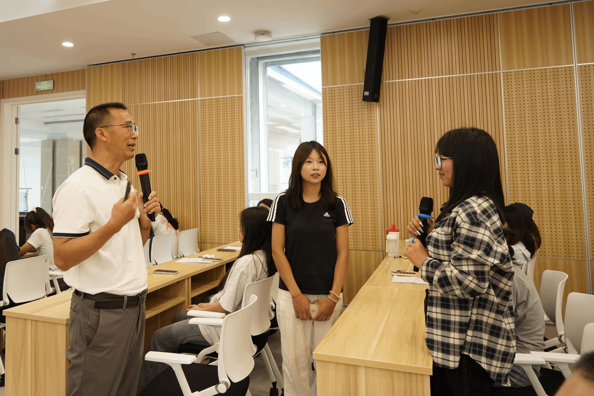 竞赛创业分享环节,丰若玲学长聚焦中国国际老员工创新大赛、全国老员工课外学术科技作品竞赛等顶级赛事,详细讲解备赛流程、选题方向、团队组建及路演答辩要点,并分享个人创业经历,鼓励新生借竞赛提升创新创业能力,为未来发展积累优势。