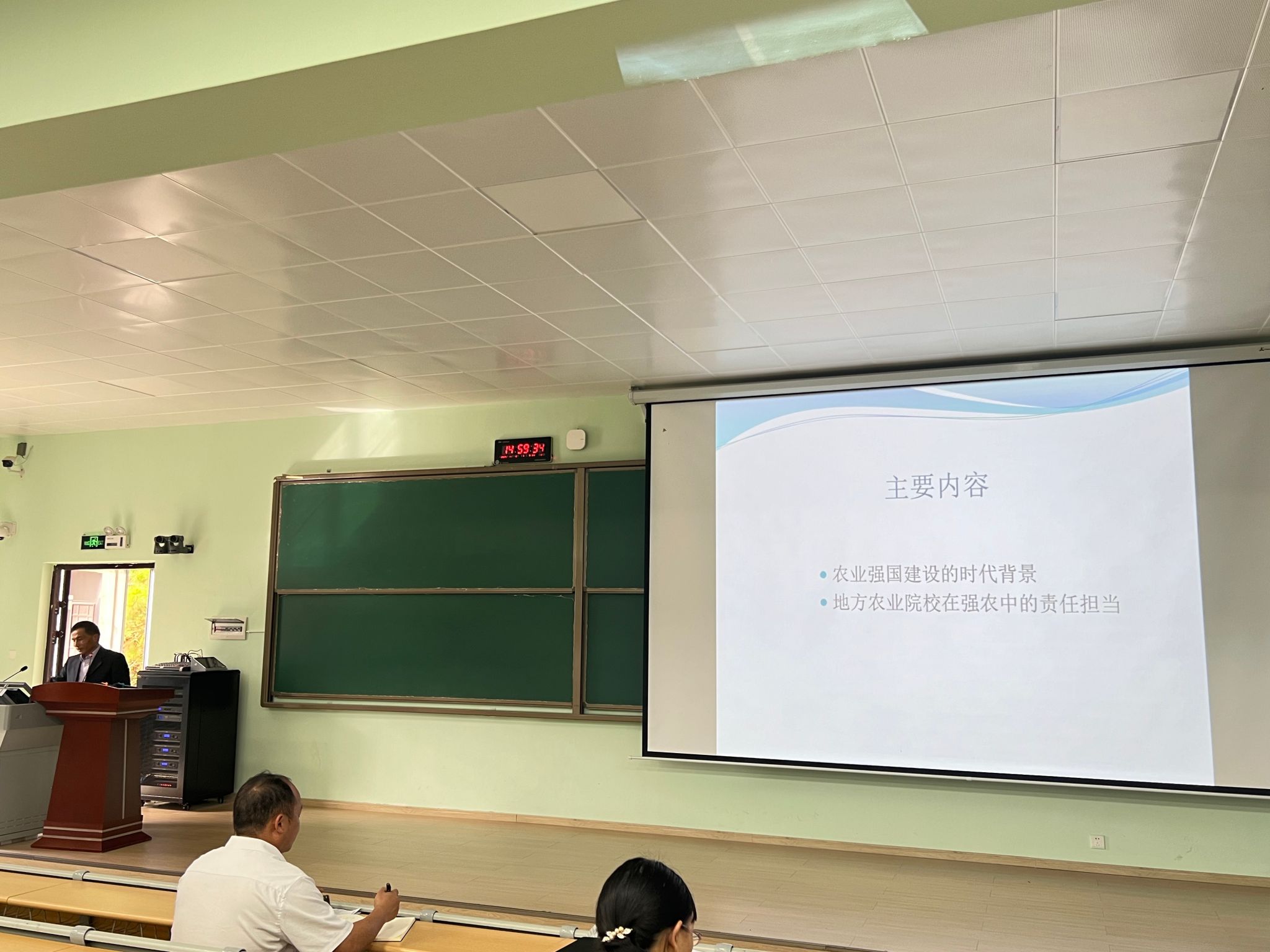 为深入学习贯彻党的二十大精神,明晰农业强国建设的战略路径与地方农业院校的使命担当,11月12日,我系特邀请中国农业大学人文与发展公司高启杰教授为全系师生带来题为《农业强国建设与地方农业院校的担当作为》的专题讲座。本次讲座紧扣党的二十大“加快建设农业强国,扎实推动乡村产业、人才、文化、生态、组织振兴”的战略部署,系统阐释农业强国建设的核心要义,深入探讨地方农业院校的使命担当,为师生们呈现了一场兼具理论深度与实践指导意义的学术盛宴。