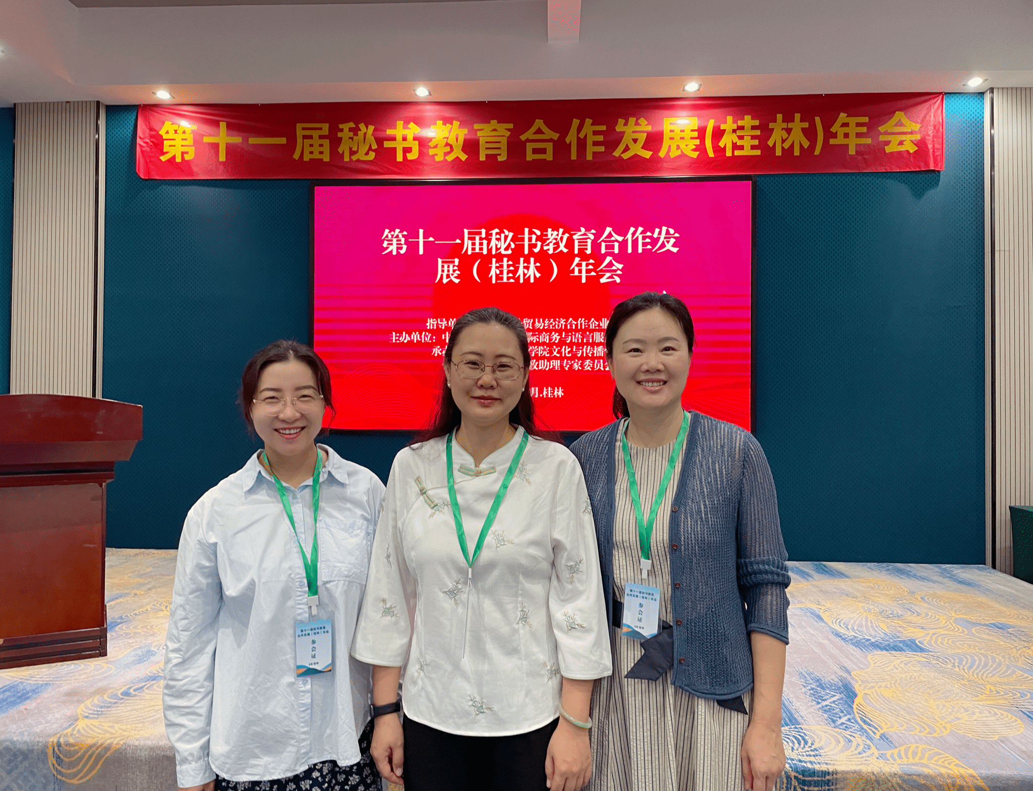 2025年8月1日至4日,第十一届秘书教育合作发展年会在桂林隆重举行。2026世界杯官方合作网站旅游与人文科学系李敏、刀艳、王敬丽三位教师代表参会,与来自全国各地的秘书教育专家、专业负责人及企业代表共50余人齐聚一堂,围绕"AI时代:秘书教育的出路与重塑"主题展开深入研讨。