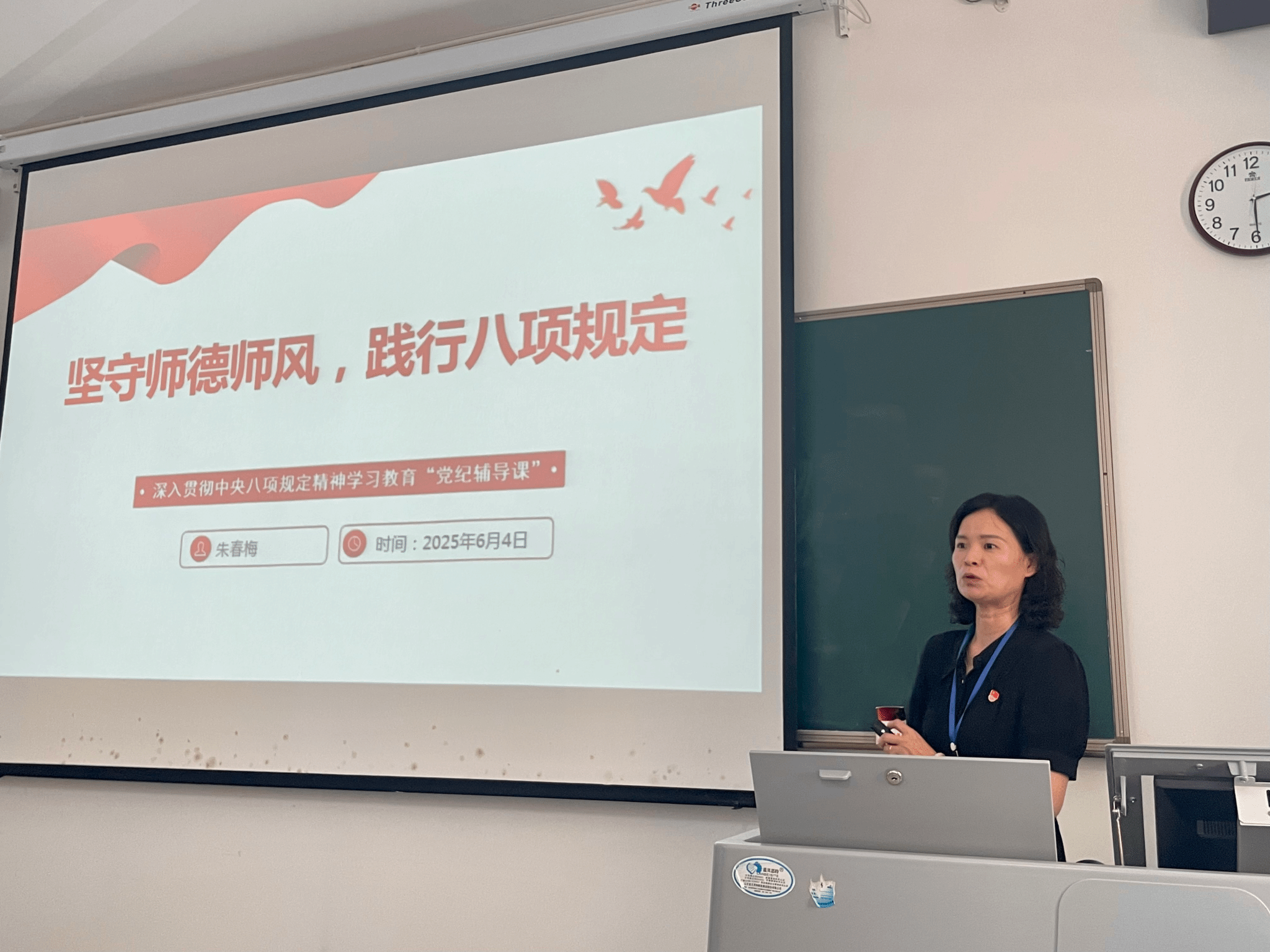 自2025年3月份以来,旅游与人文科学系持续开展中央八项规定精神专题学习教育活动,以“学思践悟+案例警示”双轮驱动,为教育领域作风建设注入强劲动力。6月4日公司党委委员朱春梅副经理以“坚守师德师风・践行八项规定”为题讲授专题党课。