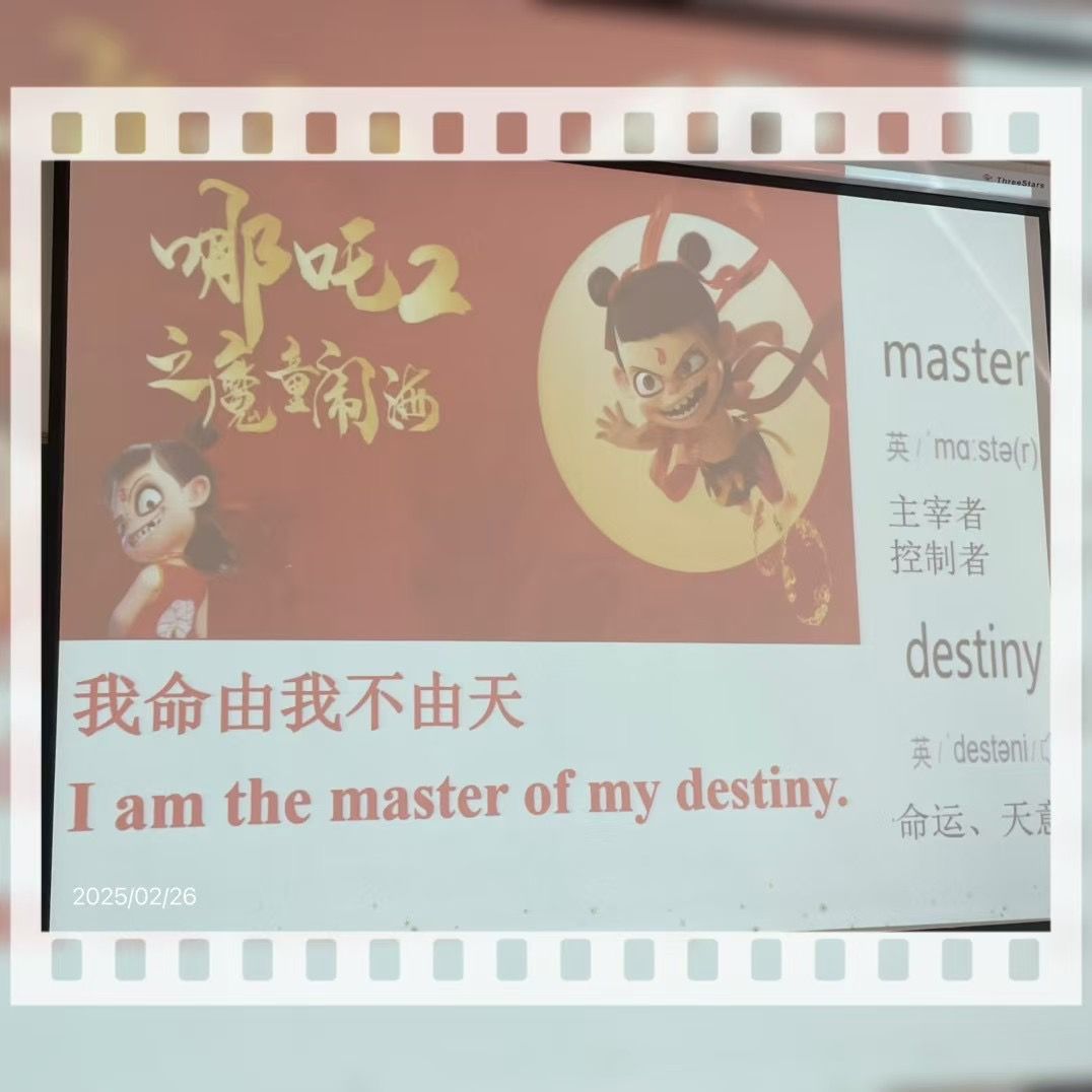 2月26日下午,公司旅游与人文科学系在常规教研活动中创新开展“外语共学时光”专题活动,由外语教研室带领全体教师共同学习电影《哪吒之魔童降世》中金句“I am the master of my destiny.”(我命由我不由天)的英文表达。