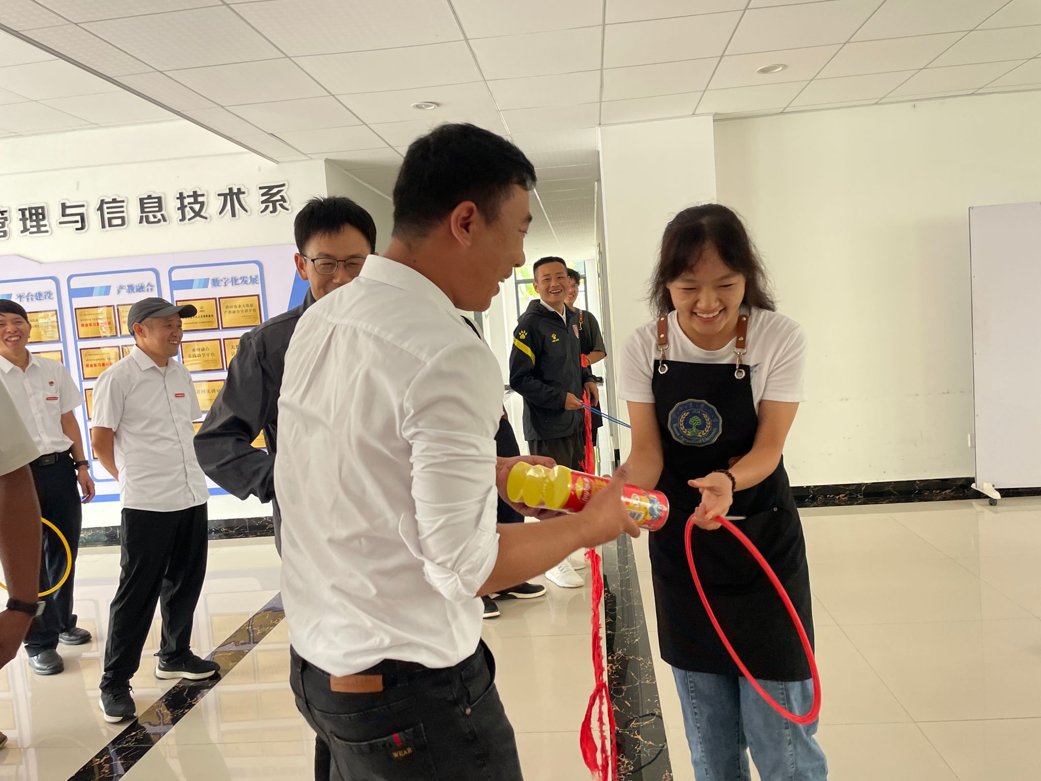 在文娱互动环节中,教师们参与了“套圈”“击鼓传花”等游戏,体验咖啡文化,既富趣味性,又加深了彼此的情感联结,现场欢声笑语不断,有效提升了节日的喜悦感和仪式感。
