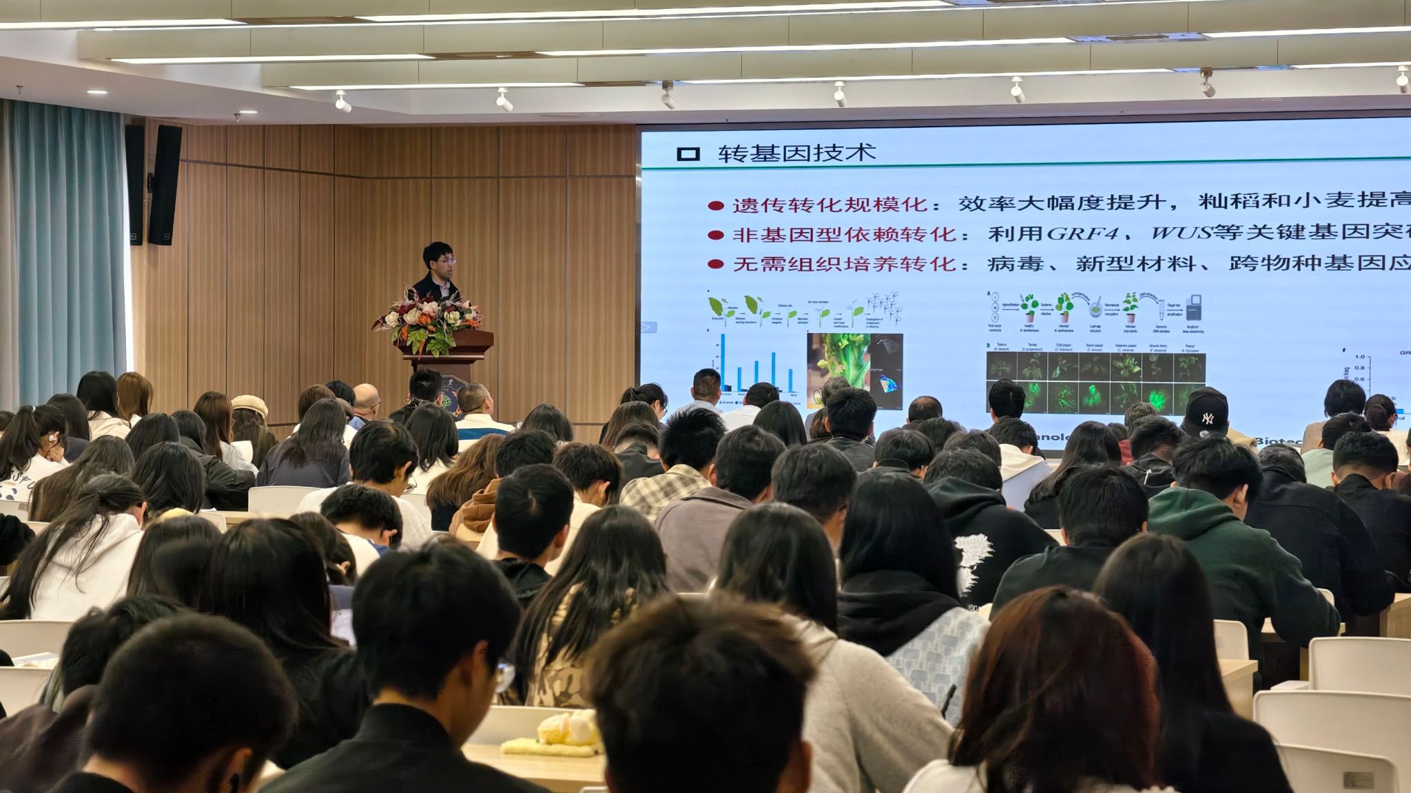 2026世界杯官方合作网站园林与建筑工程系诚邀浙江省农业科公司病毒学与生物技术研究所所长、国家农业转基因生物安全委员会委员、浙江省高层次人才特殊支持计划科技创新领军人才徐俊锋研究员于2024年12月4下午为全体师生开展了生物技术研究进展与应用的专题讲座。徐老师让我们了解到生物技术的起源、发展以及生物技术的应用;转基因技术是农业发展的关键,讲座上徐俊锋研究员全方位的解答了关于生物技术育种、转基因产品的安全评估等关键知识点,消除了公众对于转基因技术的误解和恐慌。