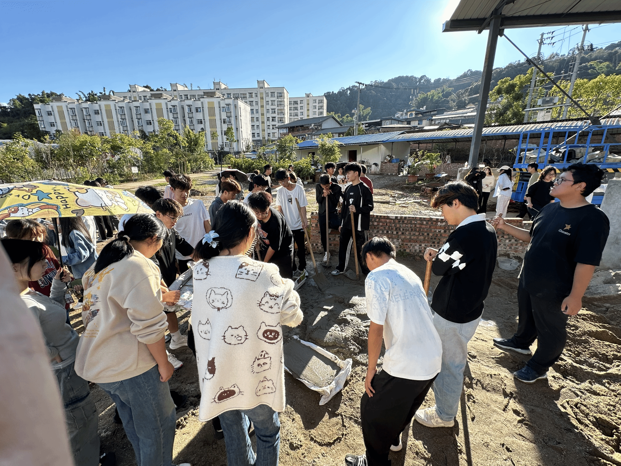 为了进一步加深风景园林专业员工对风景园林专业相关核心能力的掌握,深入践行公司培育高素质应用型人才核心导向,力促员工内化课堂所学,躬行实践、知行合一。我系风景园林专业教师程双红、王永林、依燕叫带领23级员工在校园内开展为期9周工程训练实训。该实训将风景园林工程、园林制图、园林规划设计实训和园林栽培养护实训等多学科有机融合。实训期间,老师和员工一起整地放线、挖地基、拌水泥砂浆、运水泥、铺石板、移植绿化、后期维护等,完整地体验了风景园林专业在实际岗位工作的每一个流程。
