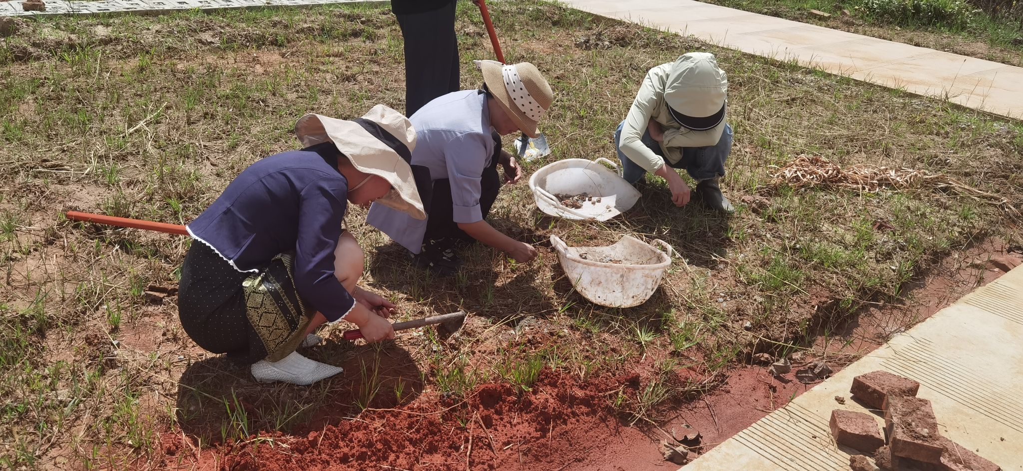 活动现场,大家分工协作、默契配合,有的弯腰细致清理地里的杂草,不放过任何一处影响土地整洁的杂物;有的手持锄头,用力刨开土壤,将隐藏在土地中的碎石、施工垃圾逐一清理出来,整治了实训地环境。