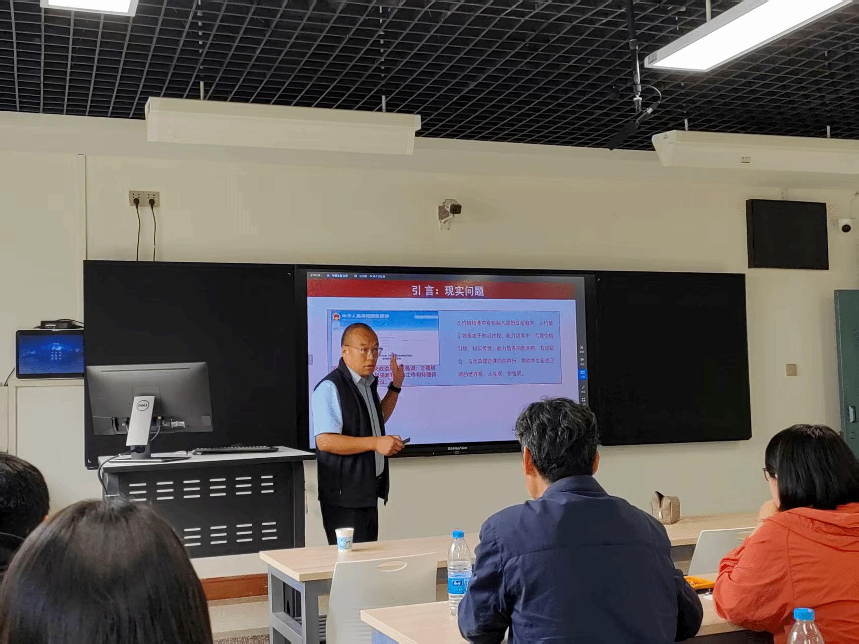 第二阶段,培训进入“AI赋能课程思政与教学设计”环节。专家介绍了人工智能技术在辅助挖掘思政元素、优化教学策略、创新评价方式等方面的应用前景。通过现场演示,展示了如何利用AI工具分析学情、生成教学案例、挖掘思政案例,从而为传统教学设计注入新活力,实现精准思政和个性化育人,激发了与会教师的浓厚兴趣与深入思考。