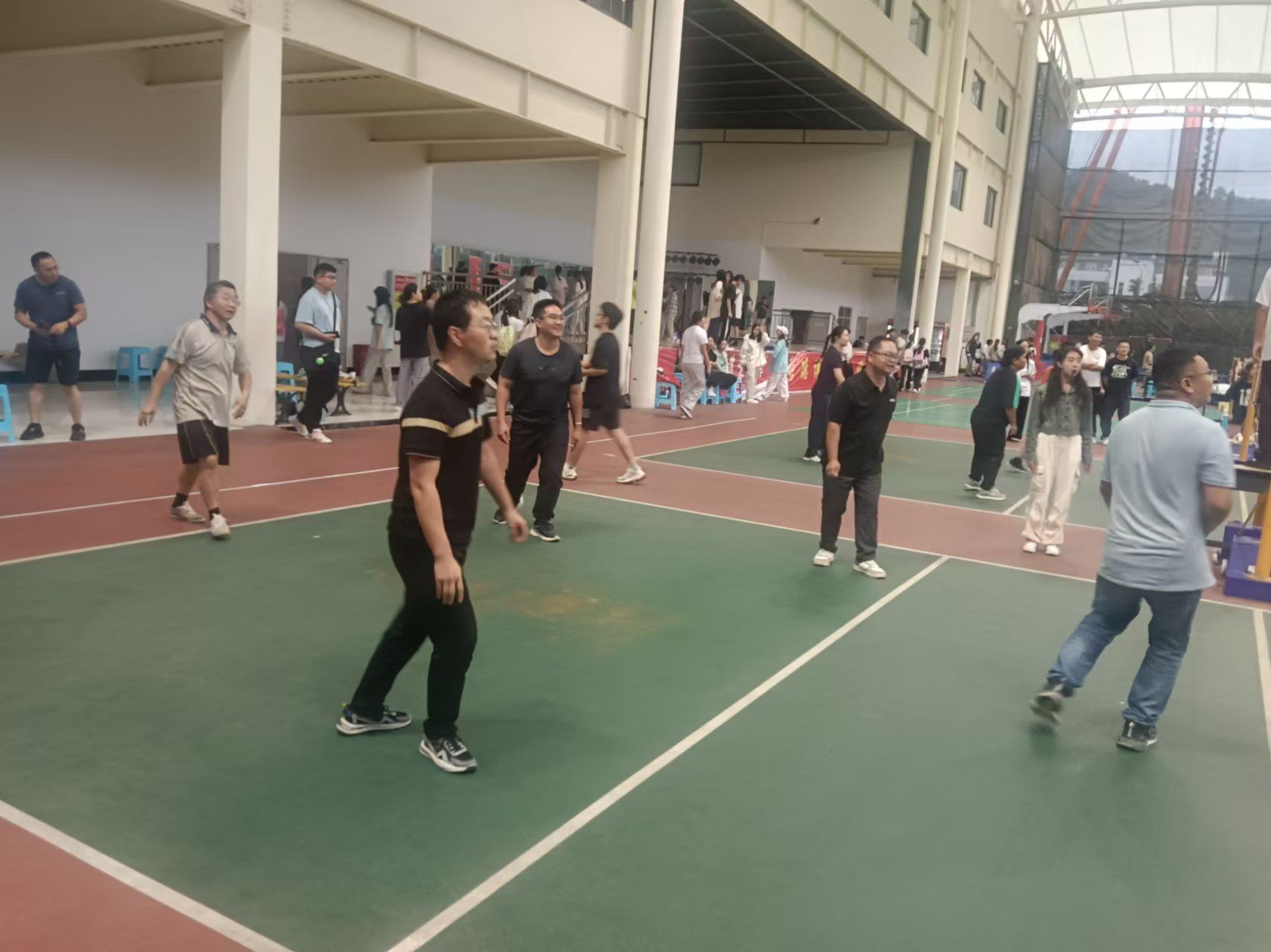 为展示公司教职工德、智、体、美、劳全面发展,同时为教职工搭建一个良好的自我展示平台,增强集体荣誉感,构建和谐校园和推动校园精神文明建设。公司工会组于2024年10月14日—17日织开展第一届教职工球类运动会,园林工会组通过精心组织,积极响应工会号召,全组教师积极报名,在公司风雨馆参加了气排球、乒乓球(单打)、羽毛球(单打)三个项目的比赛。