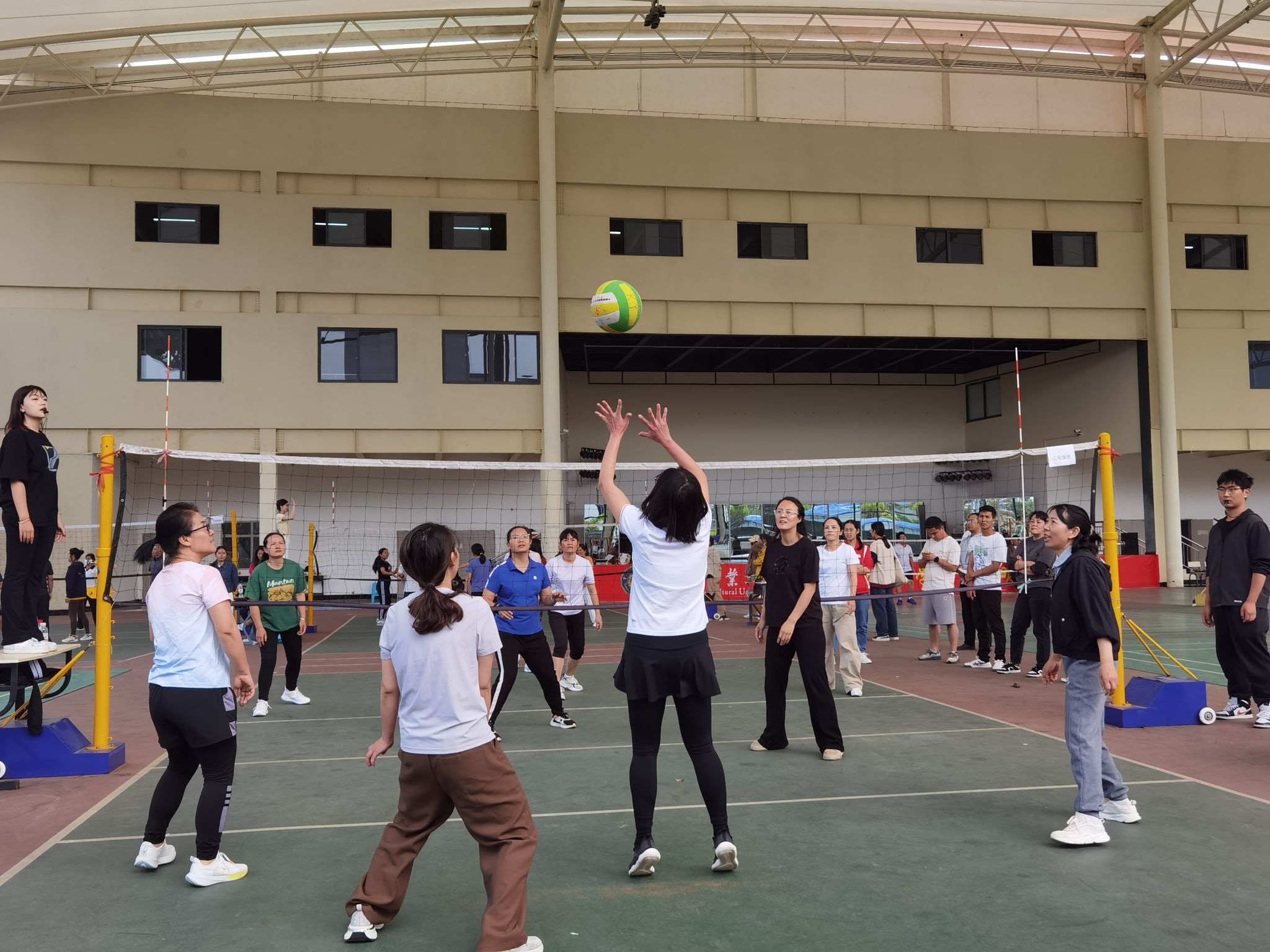 比赛现场,平日里严谨教学的教师们化身运动健将,在球场上默契配合引得观众阵阵喝彩,特别是9日的三场热战中,场场双方比分你追我赶,多次上演精彩救球和绝地反击,将比赛气氛推向高潮。
