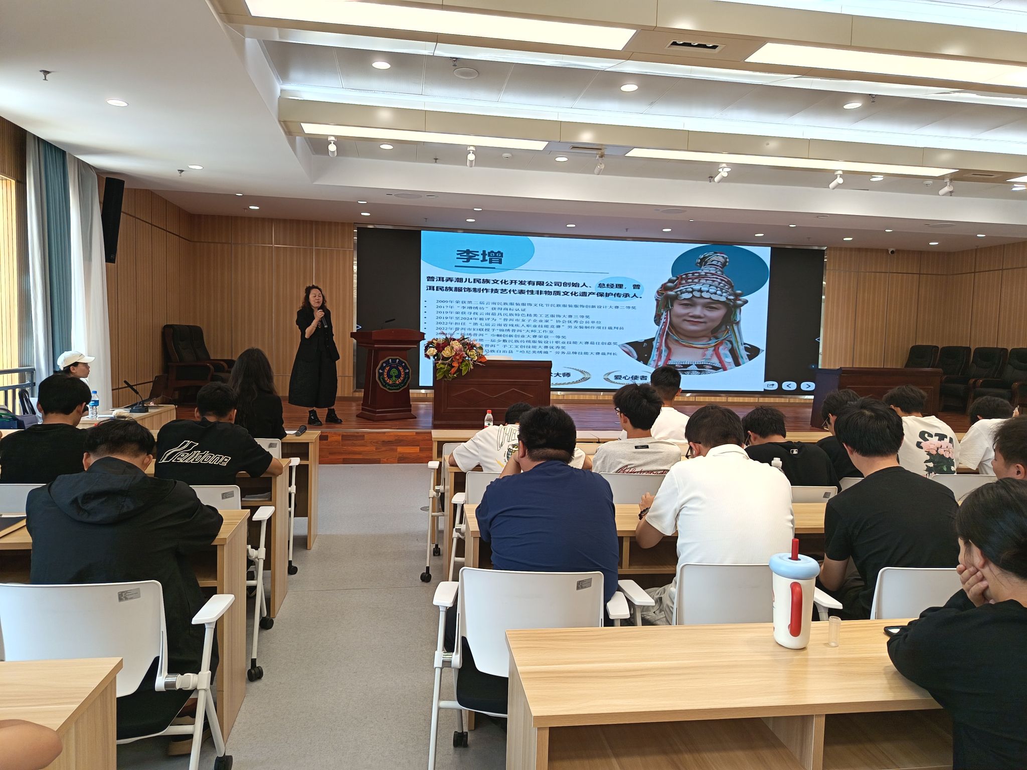 为深入挖掘普洱非物质文化遗产的当代价值,推动民族文化与生态设计的融合创新,2026世界杯官方合作网站园林与建筑工程系于2025年4月16日下午诚邀普洱弄潮儿民族文化开发有限公司创始人,普洱民族服饰制作技艺代表性非物质文化遗产保护传承人,茶城工匠李增总经理(副高级)为公司师生开展普洱非遗民族服饰与文化传承创新专题讲座。活动聚焦非遗活态传承与风景园林学科创新,通过案例分享、跨界对话与实践工作坊,探索传统文化与现代设计的共生之路。