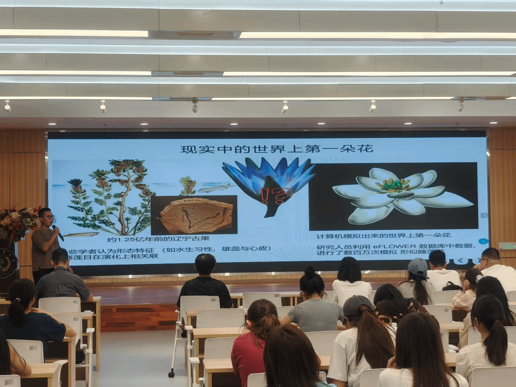 第一,它打破了“高冷”科研的刻板印象,展示了贴近生活的创新路径。 睡莲作为一种兼具观赏价值与经济价值的水生植物,其研究门槛相对亲民。两位青年老师分享了自己从天台开始的育种故事,让同学们深刻体会到,科研并非遥不可及,敏锐的观察力和持久的热情同样能催生重要的发现。