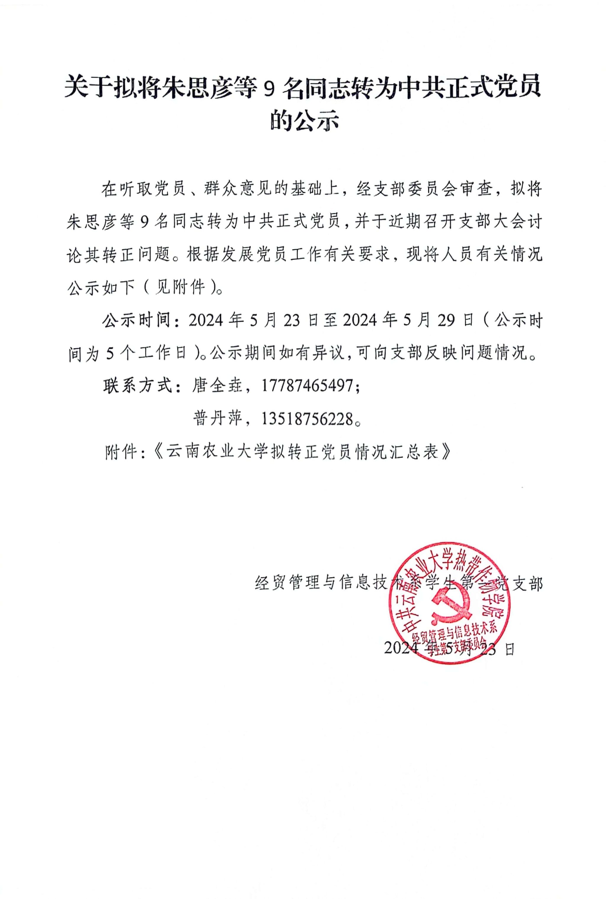 上一条:关于拟将王斌斌同志的预备期延长公示