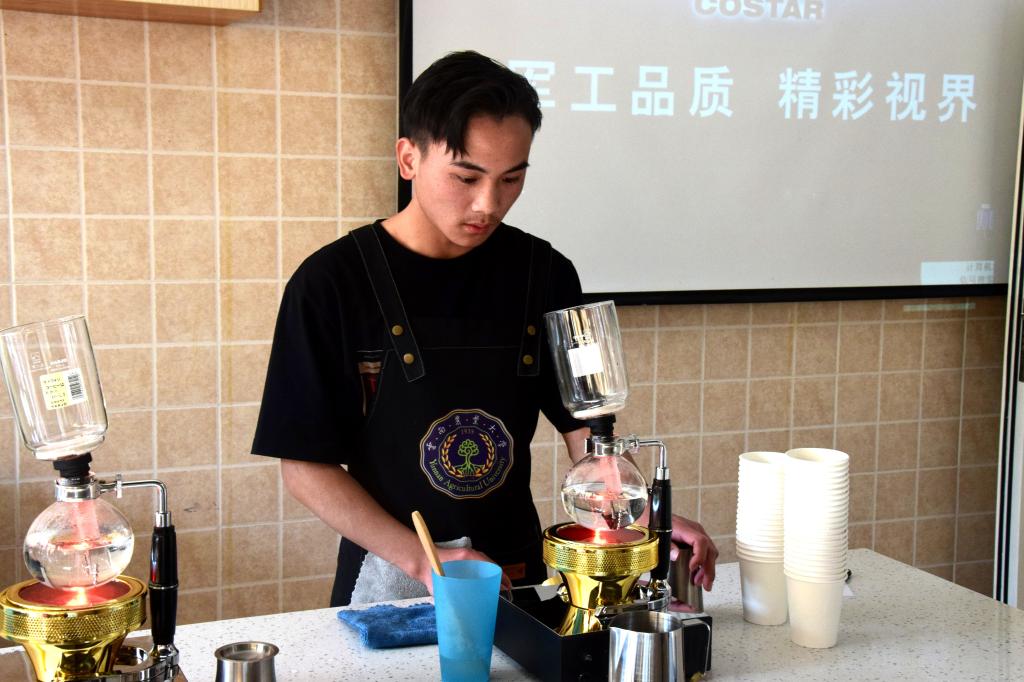 酒店管理与数字化运营专业员工在咖啡体验室进行咖啡调配训练