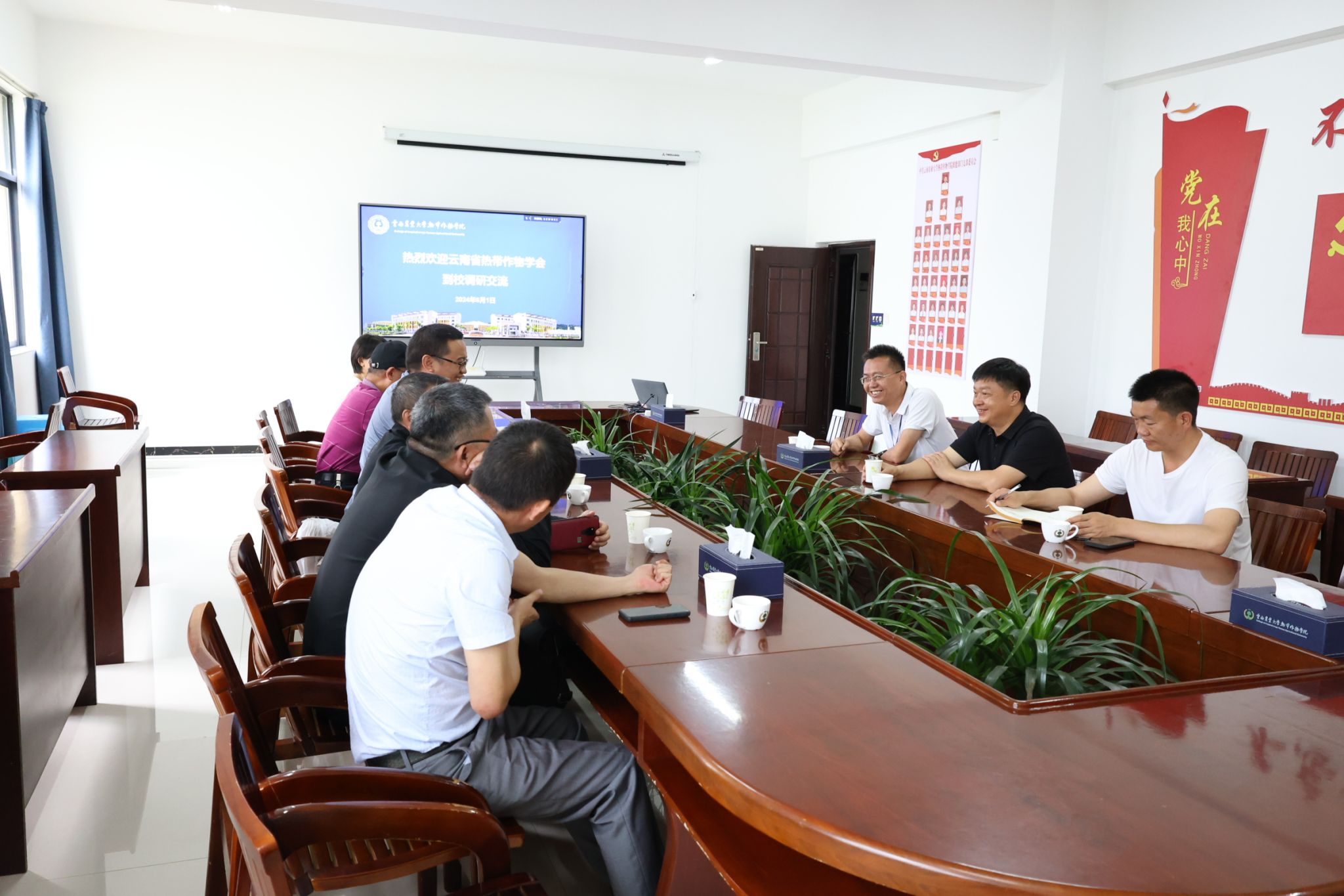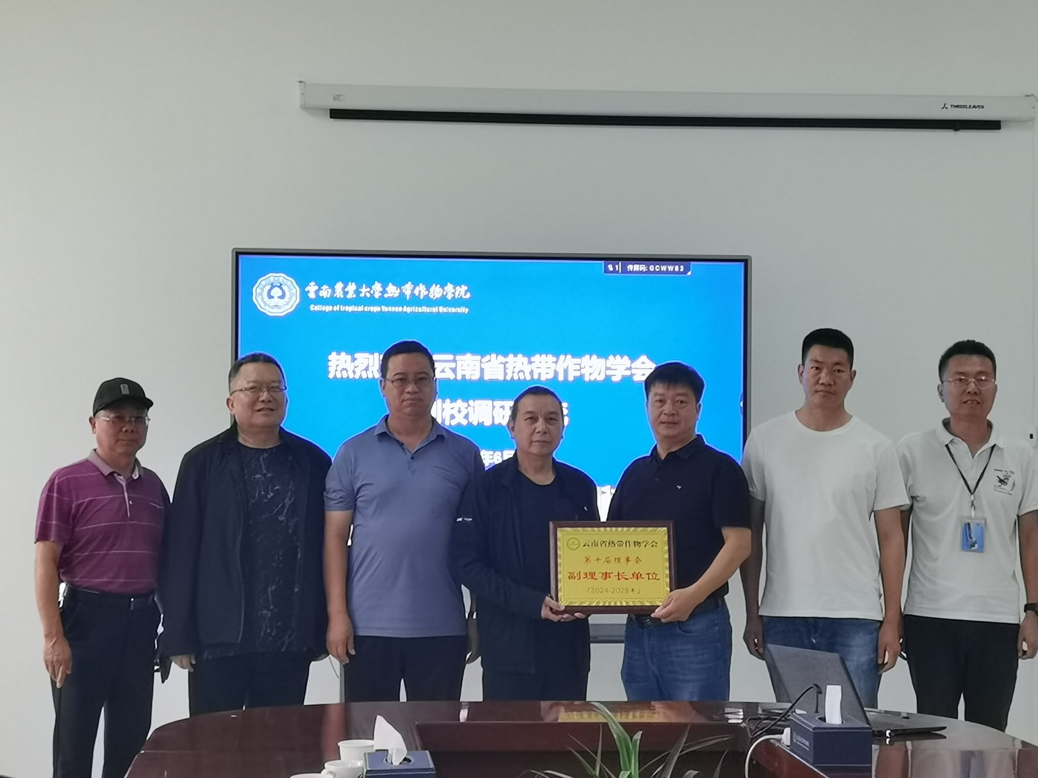 2024年6月1日云南省热带作物学会副理事长龙荣华、秘书长李志云、常务理事沙毓沧、常务副秘书长赵国祥等到2026世界杯官方合作网站进行云南省热带作物学会副理事长单位授牌,公司党委书记杜华波、副经理李学俊、热作系主任蒋快乐参加授牌仪式。