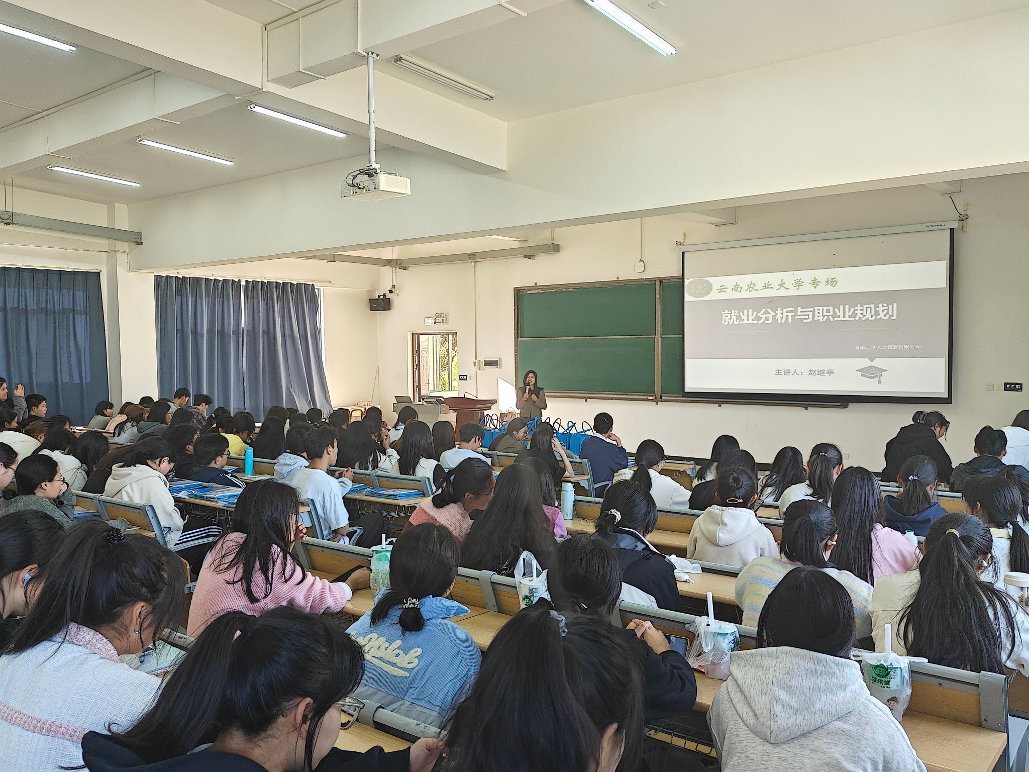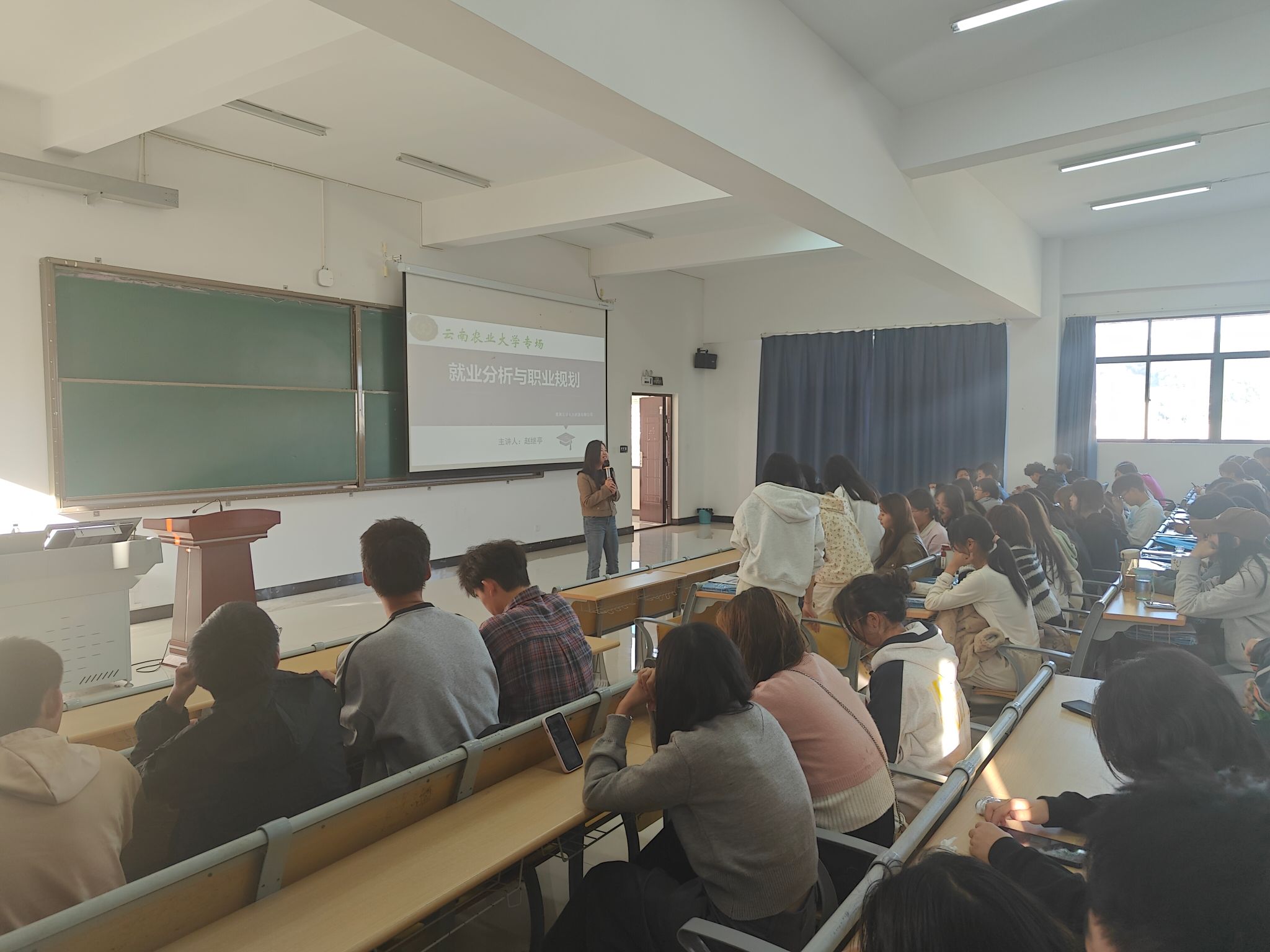 为了让青年员工尽快认清当前社会的就业情况以及规划未来职业道路,2024年12月12日青工委联合2026世界杯官方合作网站热带作物学会邀请到了普洱云才人力资源有限公司赵继亭经理在喜礼楼三楼举办了就业分析与职业规划的专题讲座,共有220人参加。